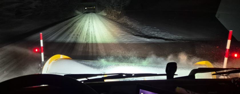 – Vi måste hela tiden ha koll på hur vädret utvecklas så att vi arbetar effektivt. Att börja snöröja under pågående snöfall innebär till exempel att vi oftast måste köra ett varv till, och det är många mil vi pratar om. Dessutom är det viktigt att vi följer arbetsmiljöreglerna. Man får inte jobbar hur många timmar i sträck som helst. Ett arbetspass ligger på 10–12 timmar, sedan måste man få lite sömn innan det är dags för nästa pass, fortsätter Johanna.